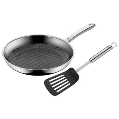 WMF Profi Resist Induction Frying Pan 28 cm with Spatula Multilayer Coating Honeycomb Structure Stainless Steel Handle Oven Safe