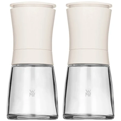 WMF Trend Mill Set of 2 Unfilled Salt and Pepper Mills Glass Containers Ceramic Grinder Spices White