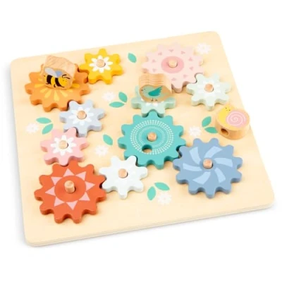 Woet Wooden Spinning Gear Puzzle FSC Montessori Toy for Toddlers 24 Months+ Colorful Rotating Flower Gears with Animal Blocks Educational Gift Boys and Girls, Motor Skill Development