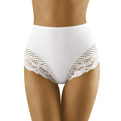 Wolbar Women's High Waisted Lace Briefs WB436, White,XL