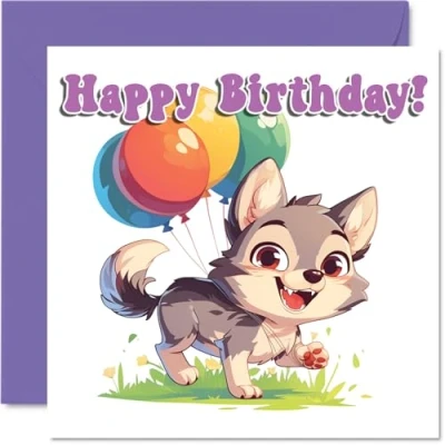 Wolf Birthday Card Balloon Animals Happy Cards for Son Daughter Brother Sister Grandson Granddaughter Niece Nephew Cousin, 145mm Bday Greeting