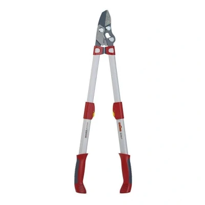 General description The Wolf Garten Power Cut Anvil Lopper is designed for efficient cutting of branches, featuring a bypass cutting action ideal for younger branches and an anvil design for hardier or dead wood. With ergonomic handles and a telescopic handle adjustment, this lopper provides comfort and ease of use, making it suitable for various cutting tasks. Technical specifications Cutting capacity: branches up to 50mm Telescopic handle adjustment: 650mm - 900mm New cutting head technology with 2 pivot points Other information 10 Year Guarantee from Wolf Garten Ergonomic handles with soft lining for comfort Strong steel tines for durability