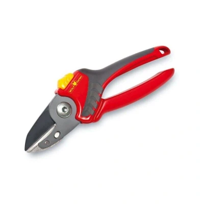 ManoManoGeneral description Comfortable and robust anvil secateurs designed for regular domestic use, the Comfort Plus Anvil Secateurs (RS2500) feature an easy-to-use locking mechanism and an internal spring mechanism. With a cutting diameter of 25mm, these secateurs are ideal for those with a lot of cutting to do, making them perfect for use in gardens and orchards. Technical specifications Cutting Diameter: 25mm Handle Size: Medium or Large Ergonomic handle with soft grip 30-degree cutting angle for optimal handling Cast zinc anvil and blade lever (replaceable) Usage These functional secateurs are suitable for both right and left-handed users, making them versatile tools for various gardening tasks. The precision-ground non-stick blades ensure smooth cutting performance. Other information Wolf Garten 10 Year Guarantee