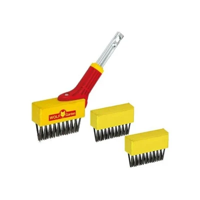 Wolf Garten Patio Weeding Brush FBM Garden Multi Change Cleaning & 2 Extra Brush Heads The multi change cleaning range is useful for cleaning patios, paths, decks, ponds and even greenhouse windows. This range helps keeps the home and garden clean and tidy, whilst saving you valuable storage space, time and effort. Wolf Multi Change weeding brush has stiff steel bristles for removal of weeds and moss from between paving slabs. Clears your patio quickly and without bending. Part of the multi-change system, attaching it to a handle of the required height will prevent over straining. Plus FBME twin pack of brush heads.