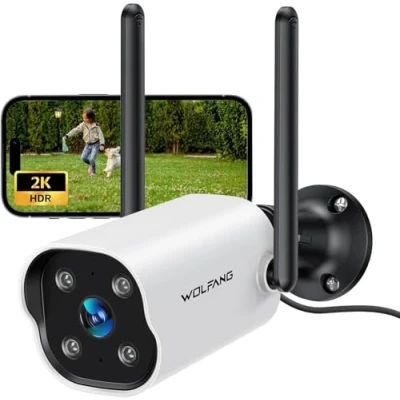 WOLFANG 2K Security Camera Outdoor, Outdoor with Night Vision, AI Motion Detection, IP65 Weatherproof,Siren Alarm, 2 Way Audio, Work Alexa & Google Home, 2.4GHz WiFi,Cloud&SD