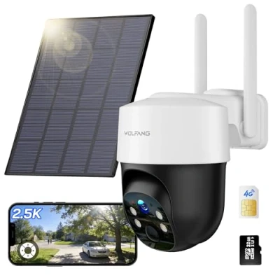 WOLFANG Wildlife Camera, 4G LTE Cellular Trail Camera Solar Powered with 2.5K View Live Video, Pan 355Tilt 110 Remote Adjustment, Security Night Vision Motion Activated,IP66 Waterproof