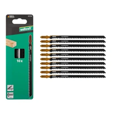 wolfcraft 10 Jigsaw Blade, Fast Cuts HCS Blade with T Shank Ideal for Squared Timber and Other softwood Cutting Depth 100m 8011100