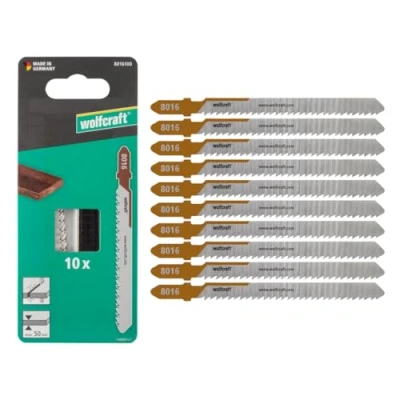 wolfcraft 10 Jigsaw Blade, Fine Cuts, Mirror Cut bi Metal Blade with T Shank Ideal for Hardwood and softwood Cutting Depth 50mm 8016100