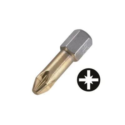 Torsion TiN bits, 25 mm, for crosshead screws with Pozidriv drive (PZ) titanium-nitride coating and torsion zone for long life and high torques ¼" hexagon drive (shank to ISO 1173 - C 6.3) with blue coloured ring for identification, Weight: 0.02 pounds, Manufacturer: WOLFCRAFT