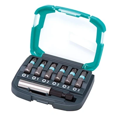 6 Solid bits for screws with crosshead drive (PH 1-3), incl. magnetic bit holder ¼" hexagon drive (shank to ISO 1173 - C 6.3) with yellow coloured rings for easy identification high-quality 2-component box, Manufacturer: WOLFCRAFT