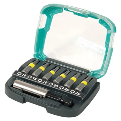 6 Solid bits for screws with TORX drive (T 10-25), incl. magnetic bit holder ¼" hexagon drive (shank to ISO 1173 - C 6.3) with green coloured rings for easy identification high-quality 2-component box, Manufacturer: wolfcraft