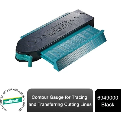 General description The wolfcraft Contour Gauge is an essential tool for accurately tracing contours and cutting lines, making it ideal for transferring these shapes to your workpiece. It is particularly useful for cutting laminate boards to fit around obstacles such as heating pipes. Usage Unlock the tracer pins and place the gauge on the ground against the obstacle. The pins will move to indicate the contour precisely. Secure the traced shape with the clamping lever to ensure it remains fixed for easy transfer. Transfer the traced contour to another part with confidence, eliminating measurement errors and inaccuracies. Other information Watch the demonstration video here