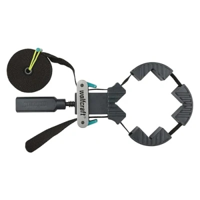continuously adjustable eccentric lever for precisely applied clamping acme-threaded spindle for tight and secure re-tensioning extremely wear-resistant nylon strap, Manufacturer: WOLFCRAFT