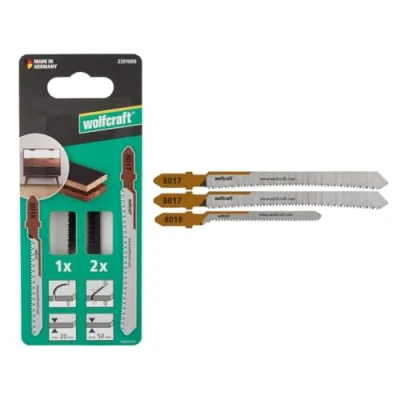 wolfcraft Jigsaw Blade Project Set for Making Furniture, 3 Pcs. Straight and Curved cuts Through Coated Wood, fine cuts, Mirror Cut 2391000