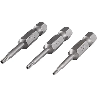 3 Solid bits, 50 mm, for safety screws with TORX drive with bore hole (size 7 / 8 / 9) ¼" hexagon drive (shank to ISO 1173 - E 6.3), S2 steel precisely fitting blade tips, Weight: 0.06172943336 Pounds, Manufacturer: wolfcraft