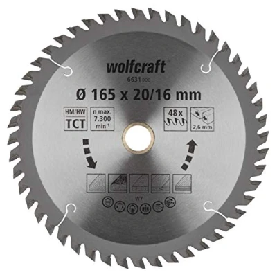 Amazon alternate tooth TC saw blade with high number of teeth for fine, clean rip and cross cuts through natural woods, fibre boards, profiled boards and panels long service life and low-noise working as well as firm, tear-free cutting edges, Manufacturer: WOLFCRAFT