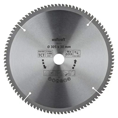 diamond-ground TC saw blade with trapezoidal flat toothing and high number of teeth for precision cuts through wood, wood with nails, plastics, thin steel profiles, non-ferrous metals long service life and fine, clean cuts, Weight: 3.34441251454 Pounds, Manufacturer: WOLFCRAFT