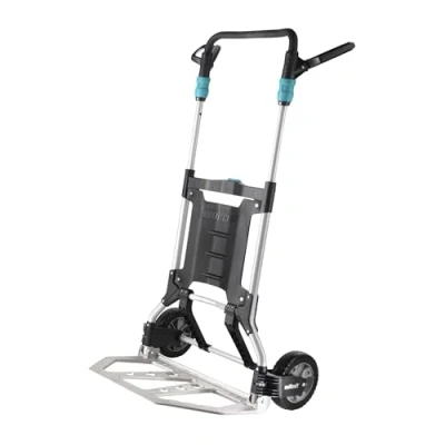 Heavy-duty hand truck for the home: Easy handling, back-friendly height (124 cm) and ergonomic handle make it easy to transport heavy and large objects with the TS 1500 sack truck The professional folding trolley with rounded crossbars, extra-large bucket and contact plate is also suitable for the safe transport of round objects - less effort required thanks to the tipping aid The trolley impresses with 2 large foamed wheels, each with 2 integrated ball bearings for puncture-free outdoor use and for negotiating stairs - comfortable and safe driving guaranteed For convenient handling, the transport trolley has a rubberised handlebar with a central locking button and can be folded in and out in a few easy steps to save space Scope of delivery: 1 x wolfcraft TS 1500 transport system, fully assembled / Sturdy professional hand truck for transporting washing machines, fridges, etc. up to 200 kg (max. 50 kg on stairs)/ Ideal as a moving aid