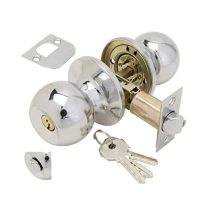 XFORT Tulip Entrance Knob Set Polished Chrome, Door with Lock for Internal Wooden Doors