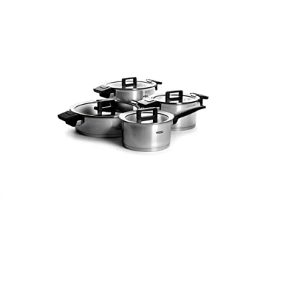 Woll Concept 8 Piece Induction Saucepan Set, Suitable for All Types of Cookers, Stainless Steel, Oven Safe up to 200, Silver