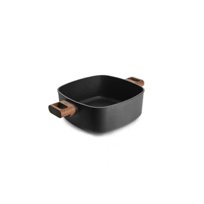 Woll Eco Logic QXR Square Casserole Dish with 2 Wooden Side Handles Inductive 24 cm x cm, 10 High Suitable for All Hob Types, PFAS Free, Non Stick Coating, Cast Aluminium, Oven Safe