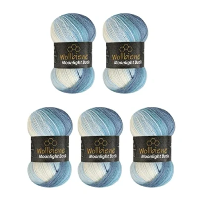 Wollbiene Moonlight Batik, 5 x 100 g Knitting Wool, 500 Wool for and Crocheting, 20% Turkish Colour Gradient (5500 Blue White)