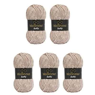 Wollbiene Softy 5 x 100 g Chenille Knitting Wool, Baby 500 Super Bulky Wool (Taupe 91)