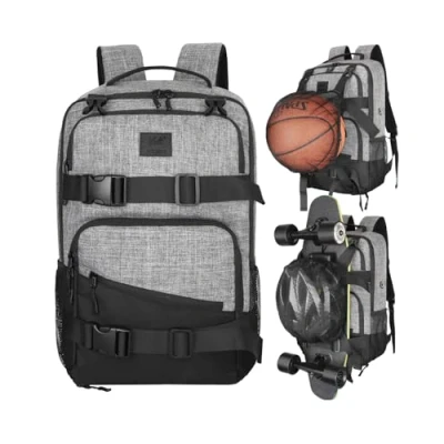 WOLT Skateboard Backpack, 15.6 Inch Laptop Backpack for Men Women, Sports with Ball Holder, Grey, One Size,