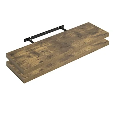 Colour: Rustic Brown; Size: 100x22.9x3.8cm/39.3’’X 9’’X 1.5’’; Quantity: 2 pieces Please fix the product to concrete walls, lightweight concrete walls or brick walls. Not suitable for drywall Fashionable Board shaped desin with your own DIY design make your home more stylish,cozy and unique High quality wood material with excellent workmanship Stable Metal fixings offer a high load capacity-Lighting up anywhere around the house including the living room, study, bedroom, corridor, bathroom, kitchen and balcony to display your books, CDs, jewelry, collectibles, photos and other small objects If you can't line up the holes of the shelves and your wall, please make a paper template for finding the bracket holes and transfer that on to the wall The body of the product is made of FSC-certified wood.