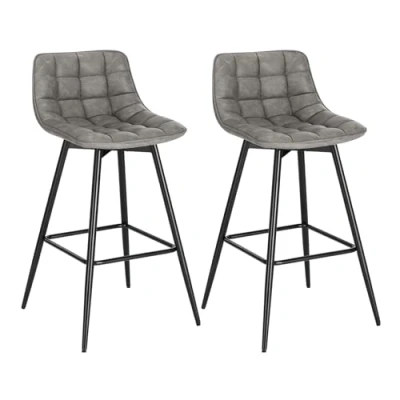 WOLTU Bar Stools Set of 2, Breakfast Kitchen Counter Barstools with Backrests and Footrests, Faux Leather, Dark Grey