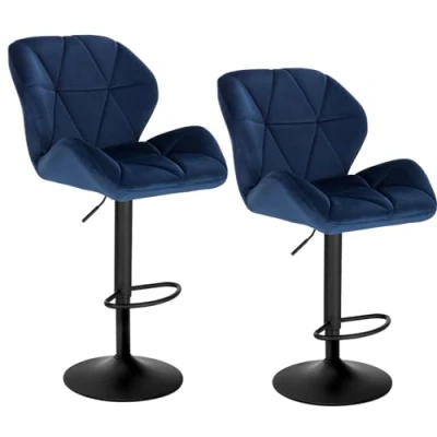 WOLTU Bar Stools Set of 2 Chairs Breakfast Dining for Kitchen Island Counter Barstools, Adjustable Swivel Gas Lift, Metal Footrest & Black Base, Blue Velvet