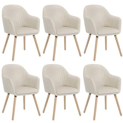 WOLTU Cream White Kitchen Dining Chairs Set of 6 PCS Upholstered Counter Lounge Living Room Corner Chair with Arms & Backrest Solid Wood Legs Reception Velvet Tub Armchairs