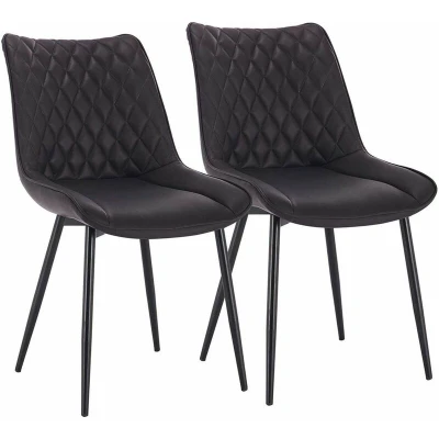 General description The WOLTU dining chairs are designed for comfort and style, featuring a modern aesthetic with a diamond grid pattern. Upholstered in easy-to-clean faux leather and filled with high-density sponge, these chairs provide a comfortable seating experience. The sturdy metal legs ensure stability and durability, making them suitable for various settings including dining rooms, kitchens, living rooms, and home offices. Technical specifications Material: Faux leather + Metal Total height: 85.5 cm Seat height: 46.5 cm Backrest height: 38.5 cm Seat area (WxD): 46 x 40.5 cm Weight capacity: 265 lbs Color options: Dark Grey, Brown, Grey, Light Brown, Anthracite Installation The chairs are delivered flat-packed and are easy to assemble. Simply screw the legs onto the bottom of the seat using the pre-bored holes. All necessary assembly fittings and instructions are included. Usage These versatile chairs can be used in various environments: Dining room Kitchen Living room Bedroom
