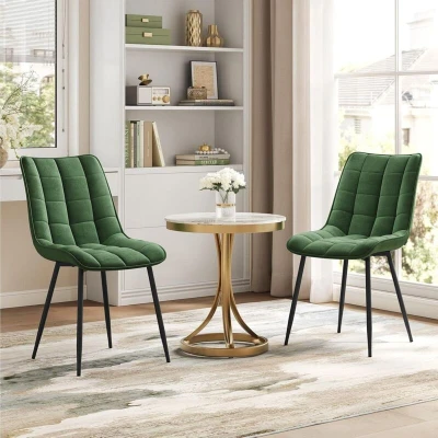 WOLTU Dining Chairs Set of 2 pcs Kitchen Counter Lounge Leisure Living Room Corner Dark Green Velvet Reception with Backrest and Padded Seat