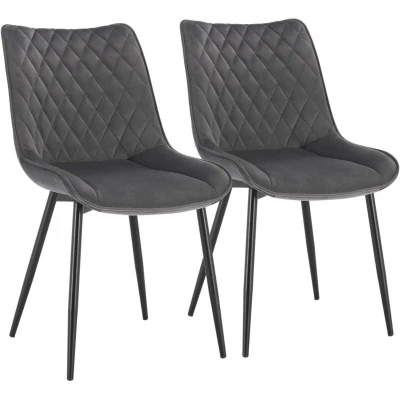 General description The WOLTU 2x dining chairs are designed for comfort and style, featuring a modern look with a diamond grid pattern. Upholstered in wear-resistant velvet and filled with high-density sponge, these chairs provide a cozy seating experience. Supported by sturdy black metal legs, they are stable and durable, making them suitable for various settings including dining rooms, kitchens, living rooms, and home offices. Technical specifications Material: Velvet + Metal Total height: 85.5 cm Backrest height: 38.5 cm Seat height: 46.5 cm Seat dimensions (WxD): 46 x 40.5 cm Weight capacity: 265 lbs Color options: Dark Grey, Pink, Black, Light Grey, Blue, Dark Green Parcel contents: 2x dining chairs, 2x assembly kits, 1x instructions Installation The chairs come flat packed and are easy to assemble. Simply screw the legs onto the bottom of the seat using the pre-bored holes. All necessary assembly fittings are included. Usage These versatile chairs can be used in various