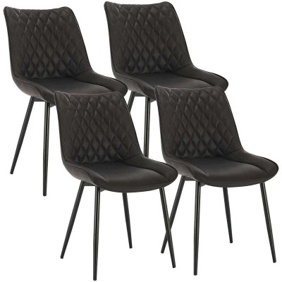 General description The WOLTU dining chairs are designed for comfort and style, featuring a modern aesthetic that fits seamlessly into various environments such as dining rooms, kitchens, living rooms, and home offices. Upholstered in easy-to-clean faux leather and filled with high-density sponge, these chairs provide a comfortable seating experience. The sturdy metal legs ensure stability and longevity, making them a reliable choice for any setting. Technical specifications Material: Faux leather + Metal Total height: 85.5 cm Seat height: 46.5 cm Backrest height: 38.5 cm Seat area (WxD): 46 x 40.5 cm Weight capacity: 265 lbs Color options: Dark Grey, Brown, Grey, Light Brown, Anthracite Installation The chairs are flat packed for easy assembly. Simply screw the legs onto the bottom of the seat using the pre-bored holes. All necessary assembly fittings and instructions are included. Usage These versatile chairs can be used in various settings: Dining room Kitchen Living room Bedroom
