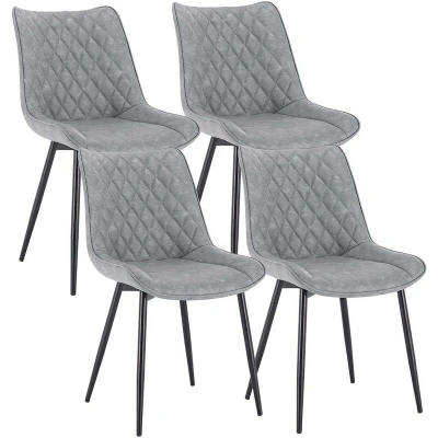 WOLTU Dining Chairs Set of 4 Kitchen Counter Lounge Leisure Living Room Corner Grey Leatherette Reception with Backrest and Padded Seat