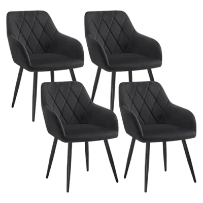 WOLTU Dining Chairs set of 4 Upholstered Armchair Kitchen Chair with Arms, Backrest, Metal Legs, Tub Living Room Lounge Chair, Black Velvet BH352sz