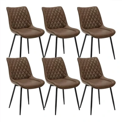 WOLTU Dining Chairs Set of 6 pcs Kitchen Counter Lounge Leisure Living Room Corner Brown Leatherette Reception with Backrest & Padded Seat
