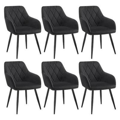 WOLTU Dining Chairs set of 6 Upholstered Armchair Kitchen with Arms, Backrest, Metal Legs, Tub Chair Living Room Lounge Chair, Black Velvet BH352sz