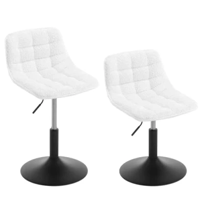 WOLTU Dressing Table Chairs Set of 2, Comfy Vanity Height Adjustable Stools with Back, Swivel Dining Office Bedroom Chenille, White, BH408ws 2 UK