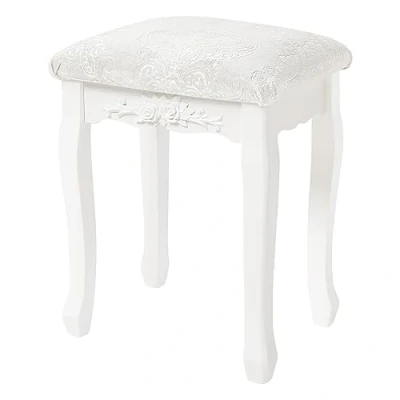ManoManoBAROQUE APPEARANCE: Designed with the rose embossment on MDF board and the ladylike floral pattern on the durable upholstery, this dressing table chair brings the Baroque to your life and adorns your space perfectly UPHOLSTERED SEAT: The seat is padded with high density foam, soft and comfortable to sit on for a long time to put on your makeup or do the hairstyle. You won’t feel too tired after that MULTI-FUNCTIONAL USAGES: This piece of bedroom furniture has been finished with exquisite details and elegant design to be this easy to blend into your room, whether it’s contemporary or traditional style, as a piano stool or shoe changing stool NON-SLIP PADS: We specially added anti-slip pads onto each foot so you won’t be worried about the slippery floor or afraid of scratches or damage to the floor. Yes, no worries here and the load capacity is 220lbs HASSLE-FREE ASSEMBLY: The dressing table stool comes with a clear installation manual so that you can finish the assembly easily and