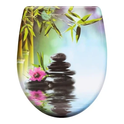 WOLTU O Shape Soft Close Toilet Seat with Quick Release Function and Decorative Motif, Top or Bottom Mounting, 175kg Load Capacity
