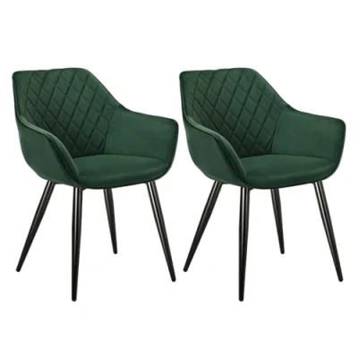 WOLTU Set of 2 Dining Chairs Green Kitchen Side Velvet Seat, Reception Armchairs for bedroom Counter Lounge Living Room,BH153gn