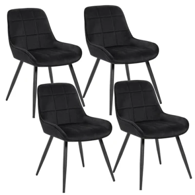 WOLTU set of 4 Dining Chairs, Relaxing Chair Velvet, for Bedroom, Living Room, Room and Kitchen, Ergonomic Chairs with Backrest, Black, BH331sz