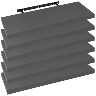 【FLOATING DESIGN】: Thanks to the concealed hanging hardware, the 6-piece set of wall shelves can be mounted invisibly on the wall. This optimises the use of wall space and creates storage or display space on the wall 【STYLISH DESIGN ELEMENT】: With its sleek mini form and timeless dark grey, the modern floating shelf easily fits into various rooms, from the living room, bedroom, study to the bathroom, kitchen, hallway, stairs, and office Easy to install: with the help of the illustrated instructions and included tools, you can easily mount the set of 6 wall boards on the wall (not for drywall and cavity walls). Depending on your taste, you can freely arrange them on the wall Robust and easy to clean: made of high-quality MDF boards, the floating shelf is strong and durable. With matte PVC film, it is smooth and water resistant. To clean, simply wipe with a damp cloth Colour: The colours shown may differ from the actual colours depending on your monitor and screen settings. ! !
