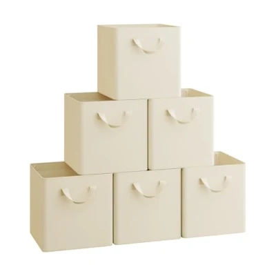 WOLTU Storage Boxes Set of 6, Baskets, Folding Wardrobe Cube Boxes, with Handle and Metal Frame, for Living Room/Bedroom/Study, Linen, 26x26x26.5cm, Cream