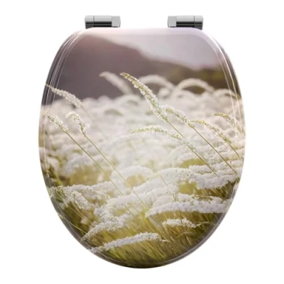 WOLTU Toilet Seat, O Shaped Loo Seat with Soft Close and Quick Release Functions, Adjustable Hinges, Upgraded Mounting Set for Different Types of Toilets, Reeds Pattern