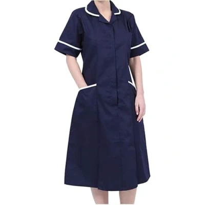 Woman Healthcare Dress Tunic Nurses Uniform Medical Dental Therapist Long Dress, Navy, Size 8