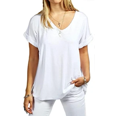Women Baggy Oversized Loose Fit Turn up Batwing Sleeve Ladies V Neck Top T Shirt, M/L 12 14, White Inspired by Celebrity Faiers